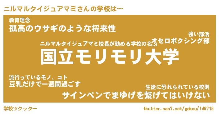 | 男性向けラノベタイトル風あだ名 | 『ニルマルタイジュアマミの憂鬱』 |