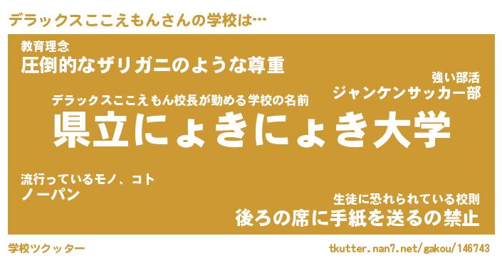 | 男性向けラノベタイトル風あだ名 | 『デラックスここえもんの憂鬱』 |