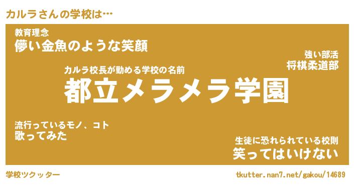 | ヒーロー風カッコイイあだ名 | 『スーパーカルラ』『ウルトラカルラマン』 |