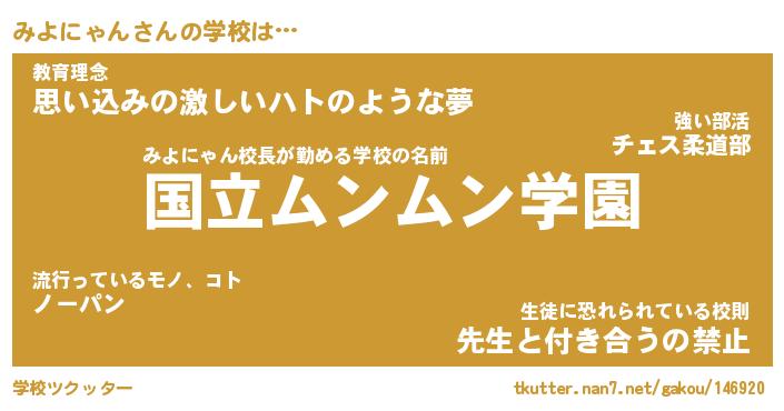 | ファンタジー風あだ名 | 『ミヨフェル』『エターナルミヨニャンー』 |