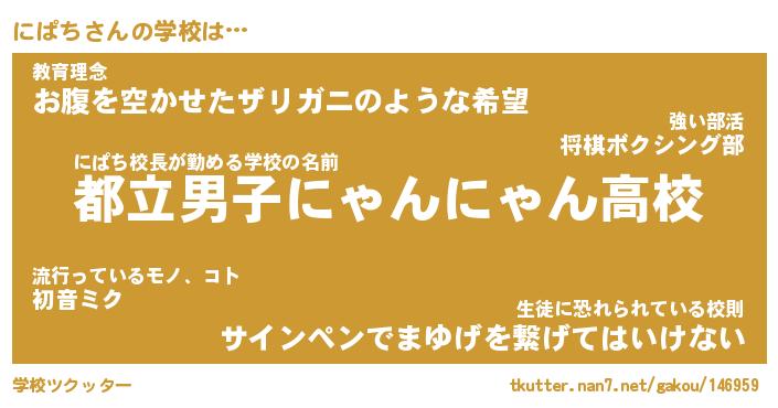 | ファンタジー風あだ名 | 『ニパフェル』『エターナルニパチー』 |