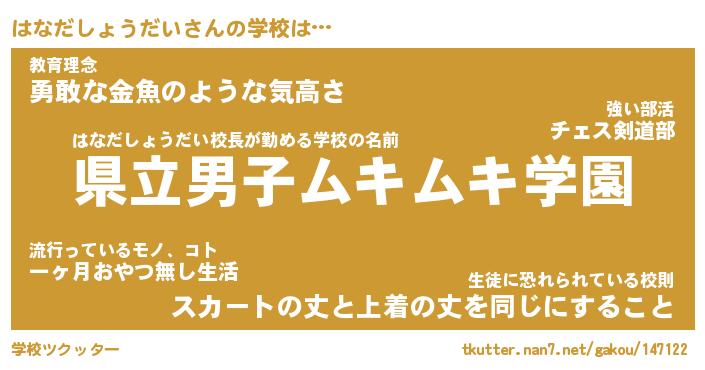 | 男性向けラノベタイトル風あだ名 | 『ハナダショウダイアートオンライン』 |