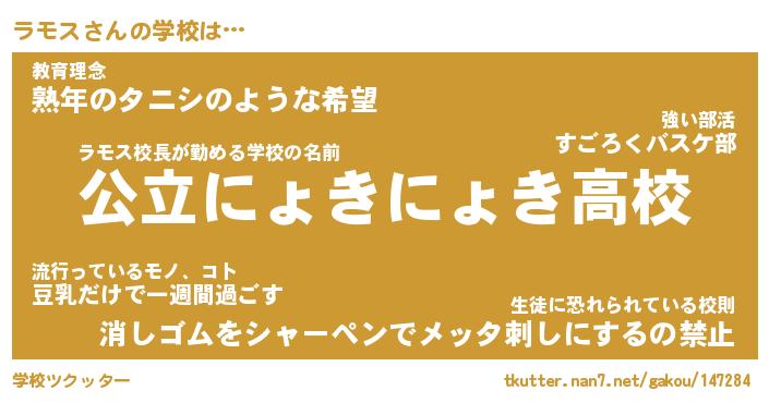 | ヘコむあだ名 | 『ラモにゅー』『牛乳』『ラモっぺ』 |