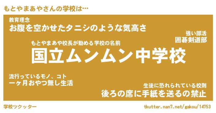| 男性向けラノベタイトル風あだ名 | 『もとやまあやの憂鬱』 |