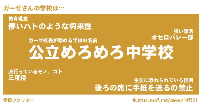 | ファンタジー風あだ名 | 『ガーフェル』『エターナルガーゼー』 |