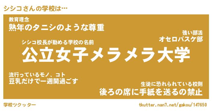 | ヒーロー風カッコイイあだ名 | 『スーパーシシコ』『ウルトラシシコマン』 |