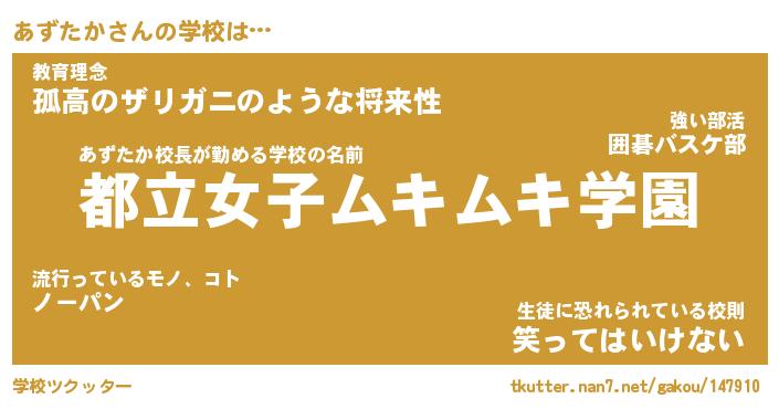 | 意味不明あだ名 | 『ペロリンあずたか』『永久保存あずたか』 |