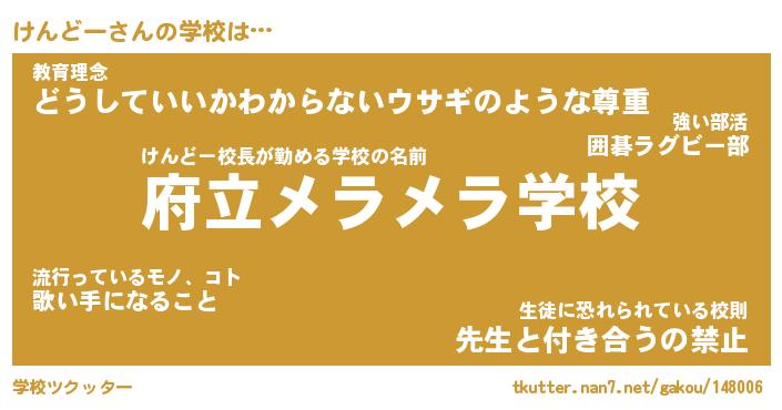 | 意味不明あだ名 | 『ペロリンけんどー』『永久保存けんどー』 |