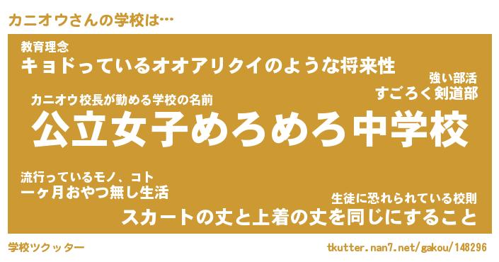 | 意味不明あだ名 | 『ペロリンカニオウ』『永久保存カニオウ』 |