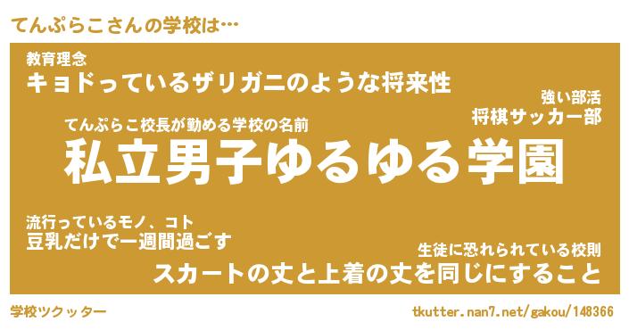 | 男性向けラノベタイトル風あだ名 | 『てんぷらこの憂鬱』 |