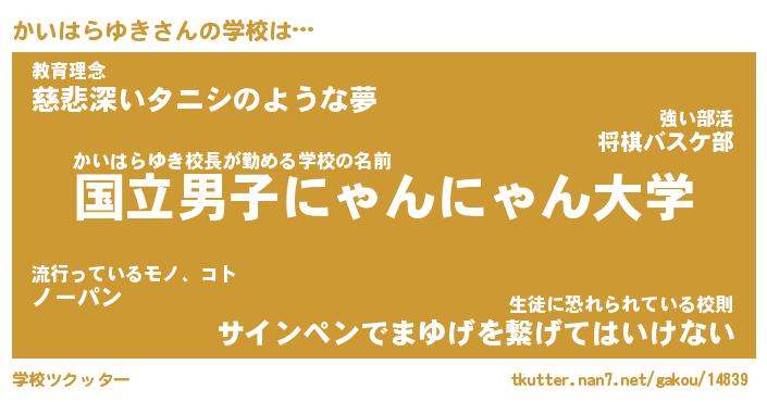 | 男性向けラノベタイトル風あだ名 | 『かいはらゆきの憂鬱』 |