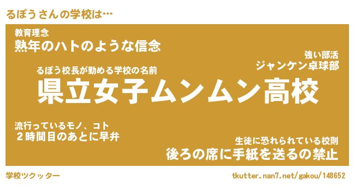 | ヘコむあだ名 | 『るぽにゅー』『なまこ酢』 |