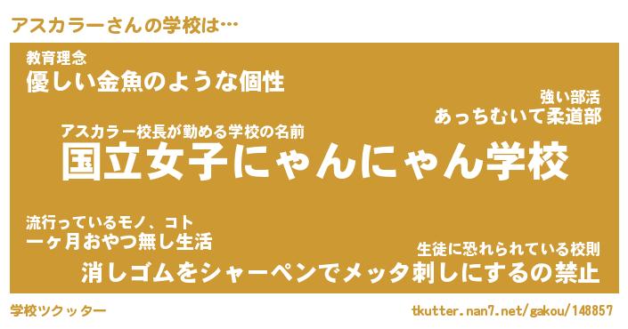 | 肩書あだ名 | 『アスカラー社長令嬢』『アスカラー塾長』 |