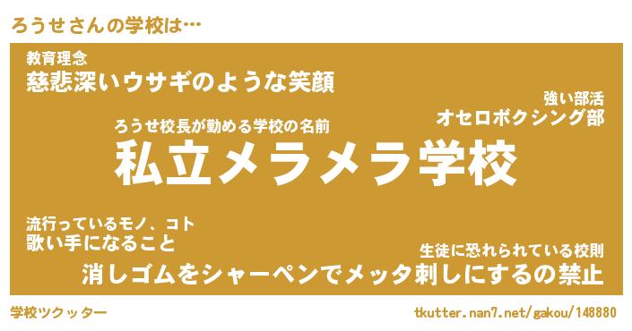 | ヒーロー風カッコイイあだ名 | 『スーパーロウセ』『ウルトラろうせマン』 |