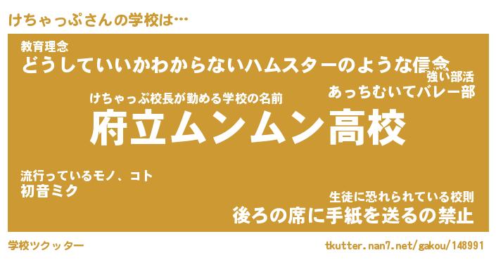 | 男性向けラノベタイトル風あだ名 | 『けちゃっぷの憂鬱』 |