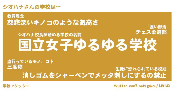 | ファンタジー風あだ名 | 『シオフェル』『エターナルシオハナー』 |