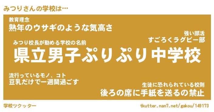 | 公立男子ムキムキ中学校は(略 …「」 | 10月03日 07:36 |