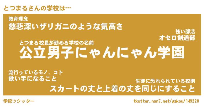 | 男性向けラノベタイトル風あだ名 | 『とつまるの憂鬱』 |