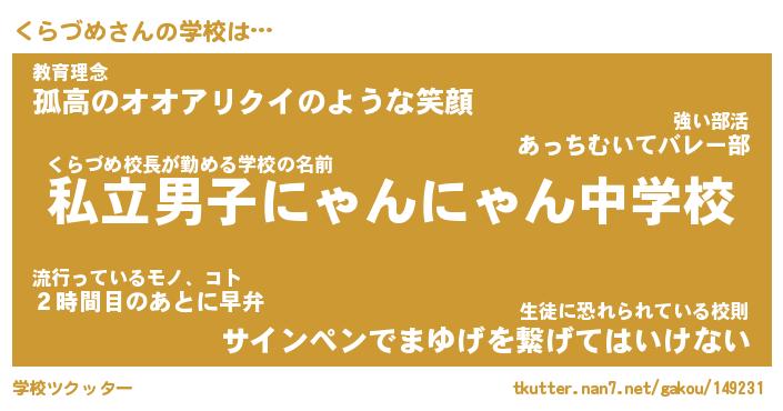 | 男性向けラノベタイトル風あだ名 | 『くらづめの憂鬱』 |