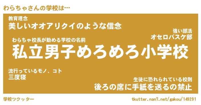 | 男性向けラノベタイトル風あだ名 | 『わらちゃの憂鬱』 |