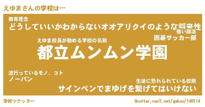 | 男性向けラノベタイトル風あだ名 | 『えゆまの憂鬱』 |