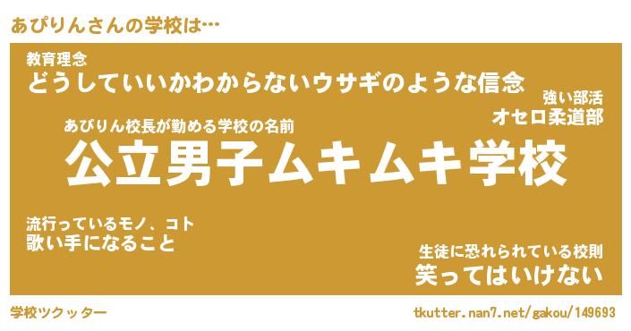 | 男性向けラノベタイトル風あだ名 | 『あぴりんの憂鬱』 |