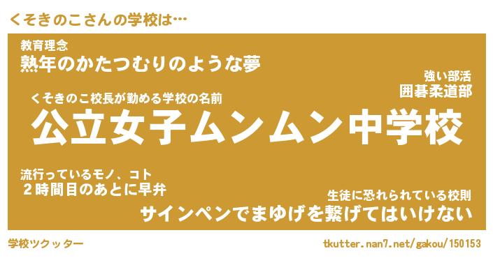 | ヘコむあだ名 | 『くそにゅー』『つくし』『くそっ子』 |