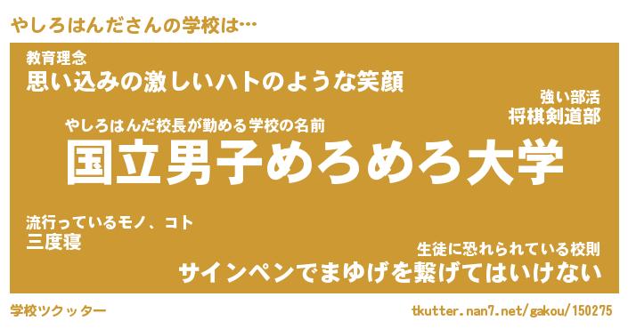 | 男性向けラノベタイトル風あだ名 | 『やしろはんだの憂鬱』 |