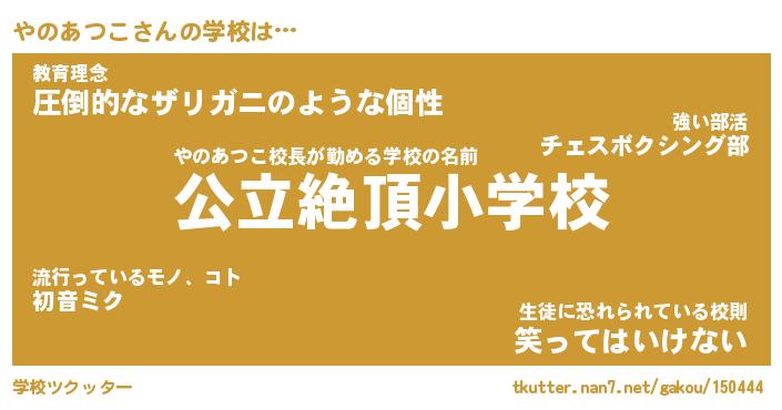| 男性向けラノベタイトル風あだ名 | 『やのあつこの憂鬱』 |