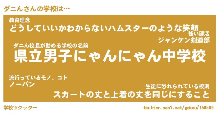 | 男性向けラノベタイトル風あだ名 | 『ダニンアートオンライン』 |