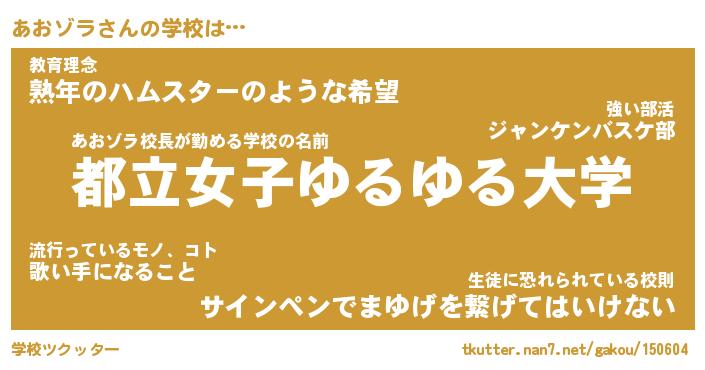 | 意味不明あだ名 | 『ペロリンあおゾラ』『永久保存あおゾラ』 |