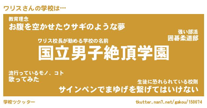 | ヒーロー風カッコイイあだ名 | 『スーパーワリス』『ウルトラワリスマン』 |