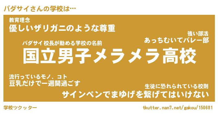 | 男性向けラノベタイトル風あだ名 | 『バダサイの憂鬱』 |