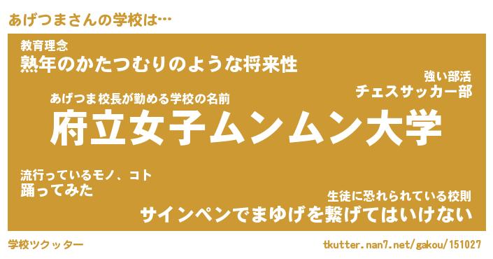 | 意味不明あだ名 | 『ペロリンあげつま』『永久保存あげつま』 |