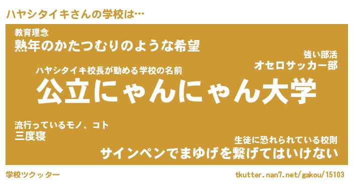 | 男性向けラノベタイトル風あだ名 | 『ハヤシタイキの憂鬱』 |