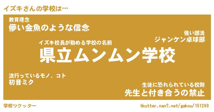 | 男性向けラノベタイトル風あだ名 | 『イズキの憂鬱』 |