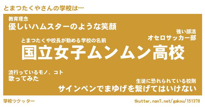 | 肩書あだ名 | 『とまつたくや店長』『とまつたくや担任』 |