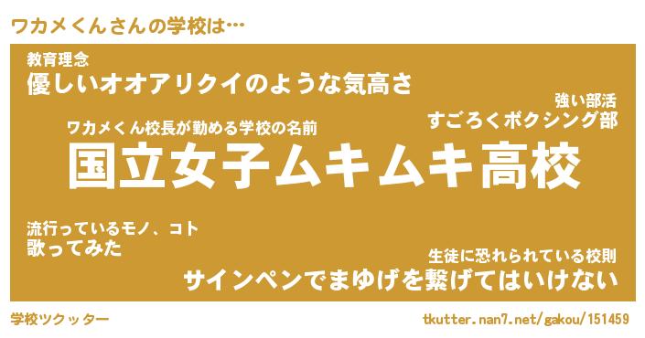 | ヒーロー風カッコイイあだ名 | 『スーパーワカメクン』『魔戒騎士ワカ』 |