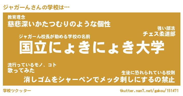 | 肩書あだ名 | 『ジャガーん店長』『ジャガーん総理大臣』 |