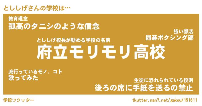| 男性向けラノベタイトル風あだ名 | 『とししげの憂鬱』 |