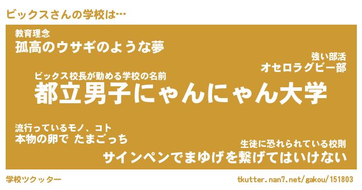 | 意味不明あだ名 | 『ペロリンビックス』『永久保存ビックス』 |