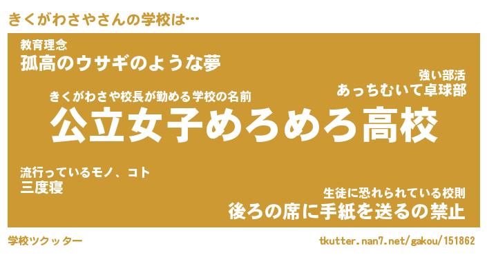 | 伝説のあだ名 | 『封印されしスナイパーきくがわさや』 |