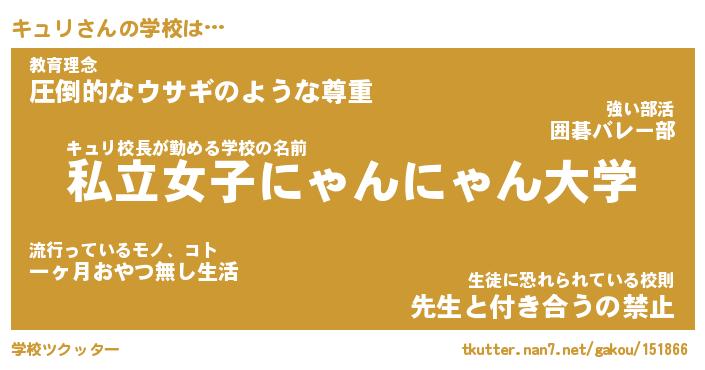 | ファンタジー風あだ名 | 『キュフェル』『エターナルキュリー』 |