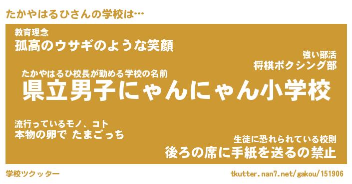 | 男性向けラノベタイトル風あだ名 | 『タカヤハルヒアートオンライン』 |