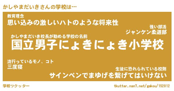 | 男性向けラノベタイトル風あだ名 | 『かしやまだいきの憂鬱』 |