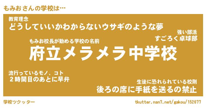 | ファンタジー風あだ名 | 『モミフェル』『エターナルモミオー』 |