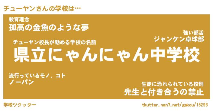 | 男性向けラノベタイトル風あだ名 | 『チューヤンの憂鬱』 |
