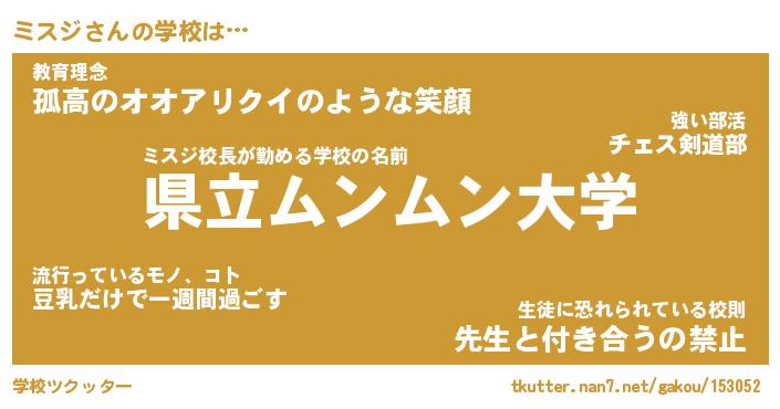 | ヘコむあだ名 | 『ミスにゅー』『つくし』『ミス太郎』 |