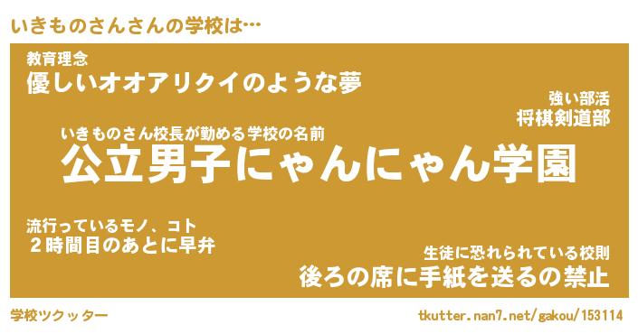 | 男性向けラノベタイトル風あだ名 | 『いきものさんの憂鬱』 |