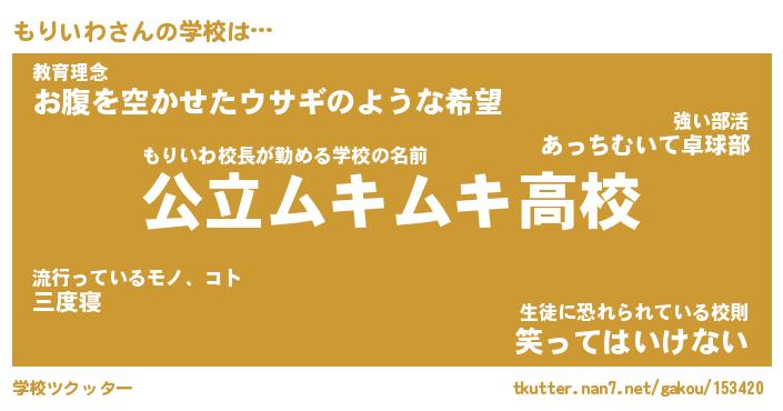 | 肩書あだ名 | 『もりいわ社長』『もりいわ総理大臣』 |